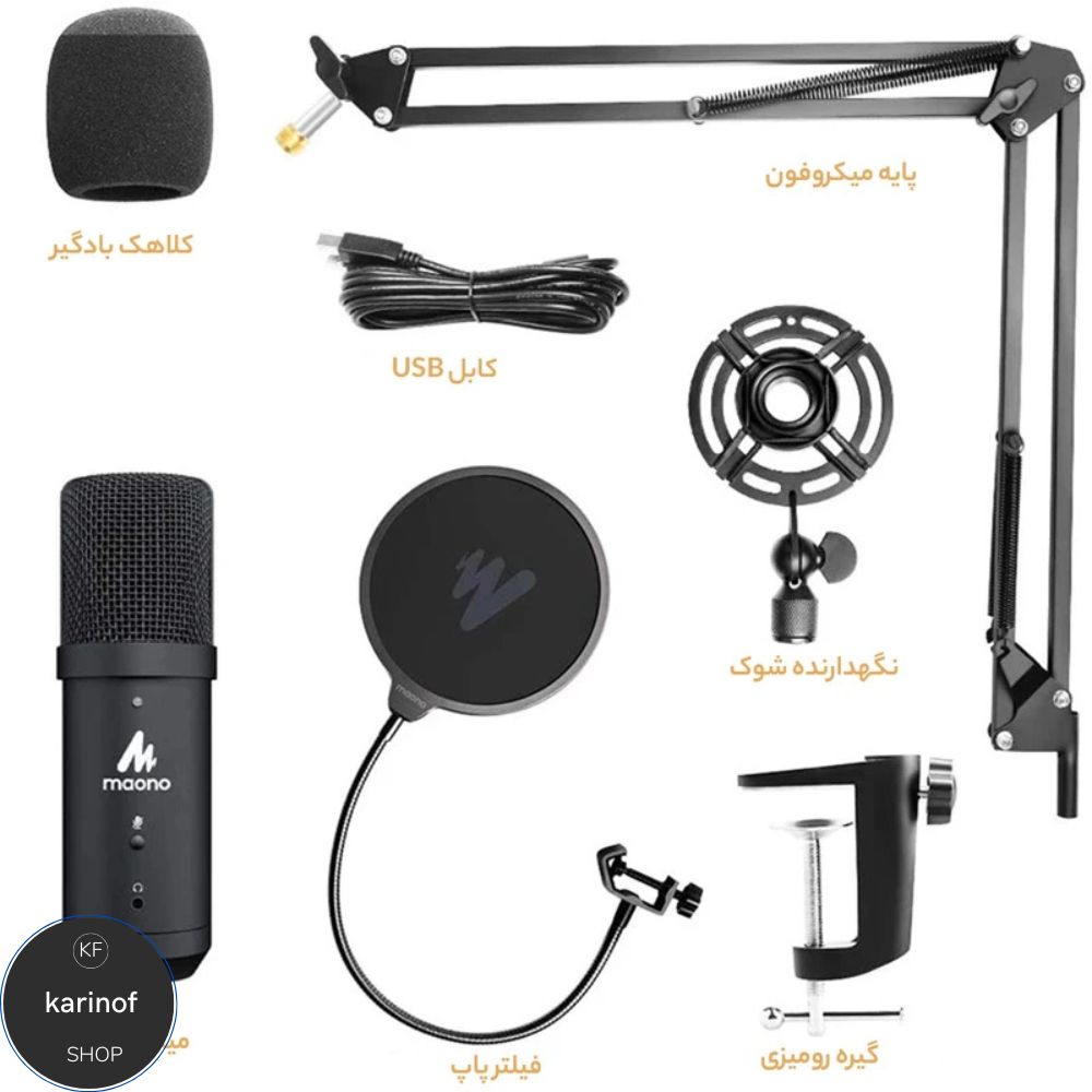 این میکروفن با بدنهای مقاوم و طراحی ارگونومیک، به همراه لوازم جانبی کاملی از جمله استند رومیزی، شوک مانت، پاپ فیلتر و کابل USB عرضه میشود. میکروفن مائونو مدل AU-PM422 بدون نیاز به نصب درایور، به سادگی به کامپیوتر، لپتاپ یا تبلت متصل شده و برای تولید محتوای حرفهای یک گزینه عالی محسوب میشود.