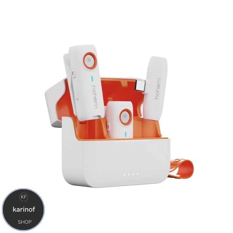 میکرفون هوهم مدل HOHEM با طراحی ارگونومیک و وزن سبک، به کاربران این امکان را میدهد تا در طولانیمدت از آن استفاده کنند. پک کامل این میکروفون شامل دو فرستنده (2TX) و یک گیرنده (1RX) به همراه کیس شارژ است. گیره قوی و آهنربای داخلی این محصول باعث میشود به راحتی روی لباس یا تجهیزات متصل شود و حتی در حین حرکت نیز به خوبی در جای خود ثابت بماند.